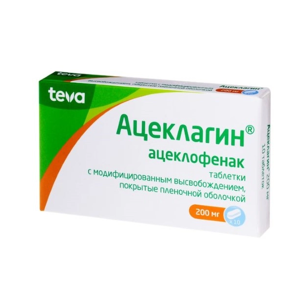 Ацеклагин таблетки с модифицированным высвобождением покрытые плёночной оболочкой 200мг №10