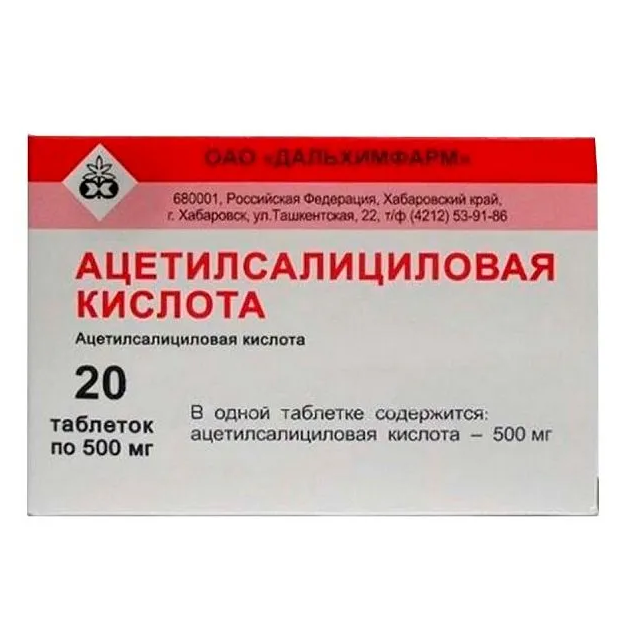 Активное вещество: ;Ацетилсалициловая кислота ;— 500 ;мг.