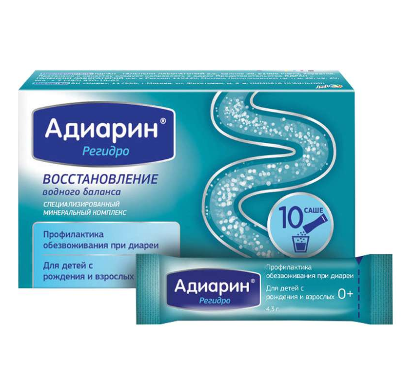 Адиарин® Регидро следует принимать с момента появления первых признаков обезвоживания и до тех пор, пока длится диарея. Для грудных детей и детей младшего школьного возраста — не менее 24 ч, для детей старшего возраста и взрослых — не менее 36 ч.