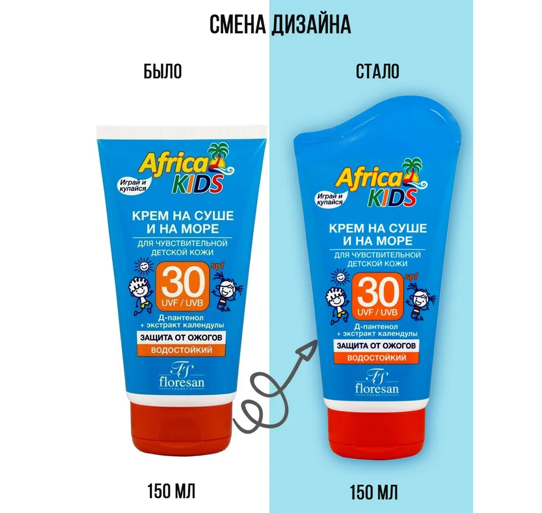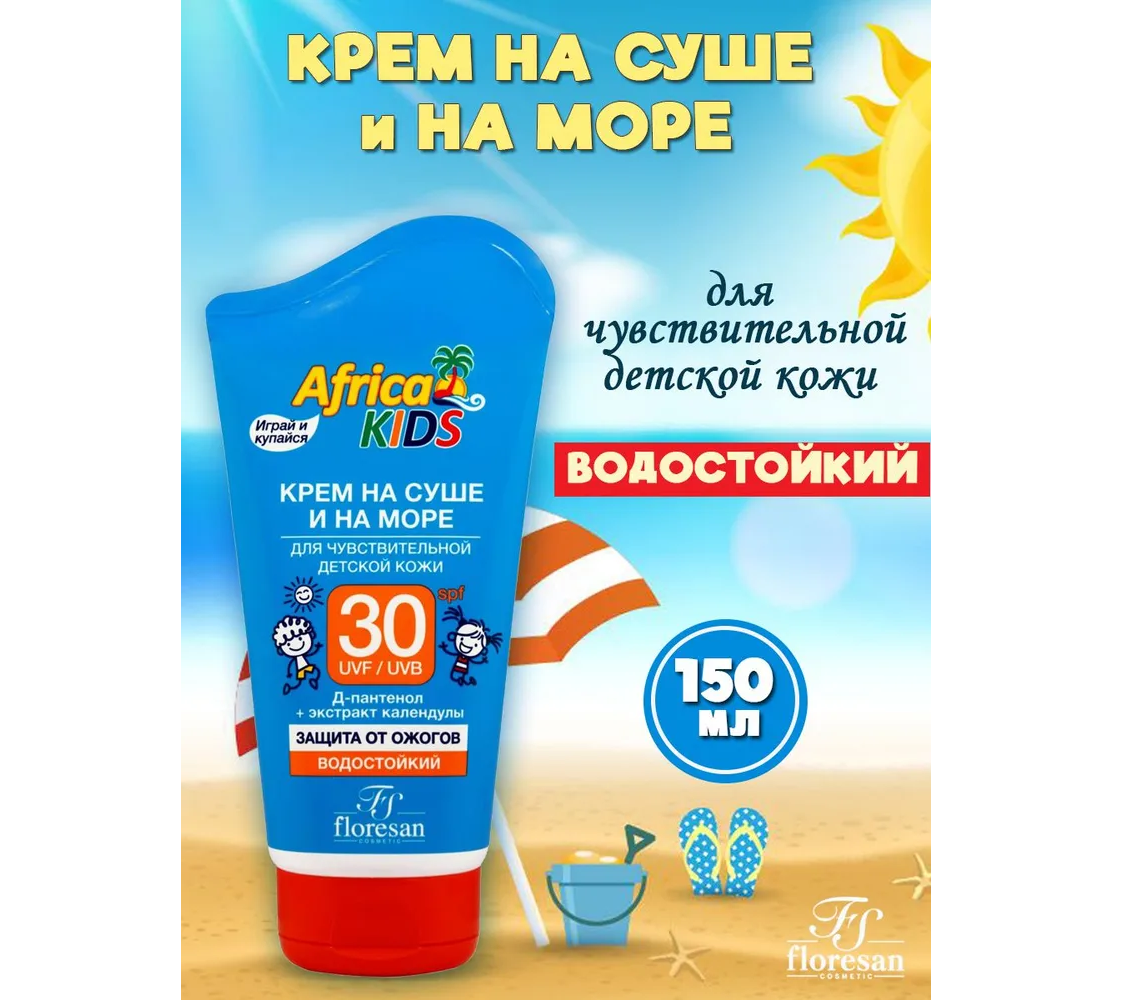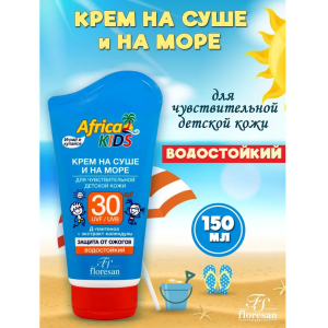Африка кидс крем солнцезащитный на суше и на море для чувствительной детской кожи SPF30 туба 150мл