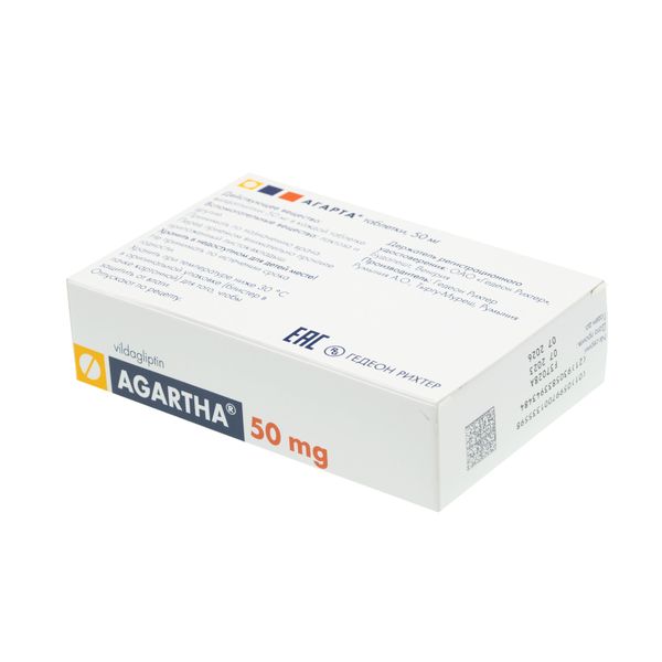 Действующее вещество: вилдаглиптин 50 мг.