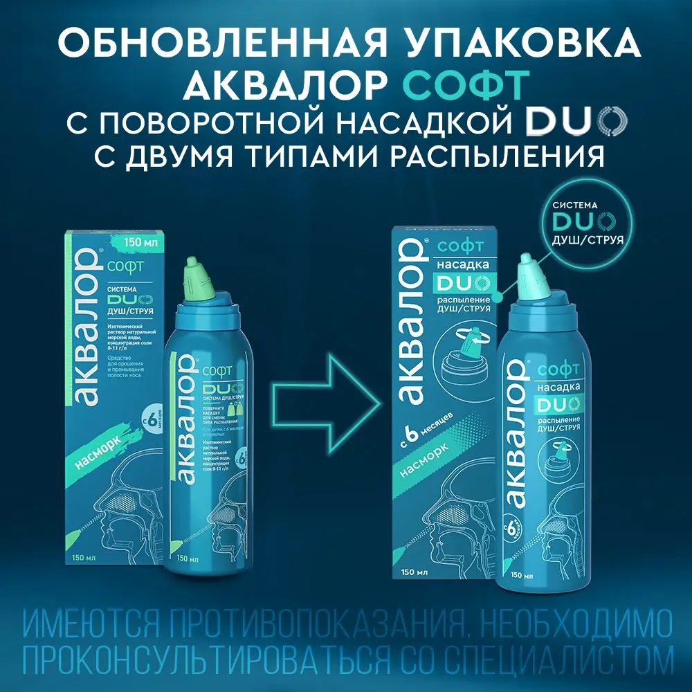 Аквалор софт DUO душ/струя средство для орошения и промывания полости носа 150мл