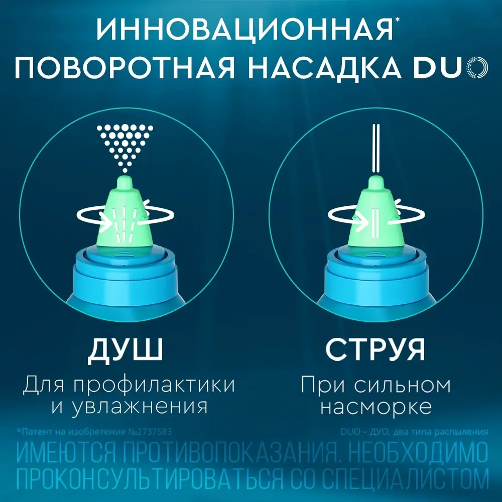 | Описание устройства изделия | Средство для орошения и промывания полости носа для детей и взрослых в вариантах исполнения «Аквалор® софт мини» 50 мл «Аквалор® софт» 150 мл по ТУ 32.50.50-008-00480081-2017 (далее по тексту средство) представляет собой аэрозоль в алюминиевом баллоне под давлением c: полиэтиленовой анатомической насадкой для носа, создающей распыление «душ», с ограничительным кольцом и с полипропиленовым колпачком ; или полиэтиленовой поворотной анатомической насадкой для носа, создающей распыление «душ / струя», с ограничительным кольцом и с полипропиленовым колпачком. Инновационная поворотная насадка позволяет выбрать требуемый тип распыления «душ» или «струя». Средство для орошения и промывания полости носа для детей и взрослых в варианте исполнения «Аквалор® норм» 150 мл по ТУ 32.50.50-008-00480081-2017 (далее по тексту средство) представляет собой аэрозоль в алюминиевом баллоне под давлением с полиэтиленовой анатомической насадкой для носа, создающей распыление «струя», с ограничительным кольцом и с полипропиленовым колпачком. Внутрь баллона помещен четырехслойный пакет с содержимым, снабженный специальным односторонним клапаном. Насадка имеет перемычку для контроля нажатия на аэрозольный клапан. Не является лекарственным средством. |