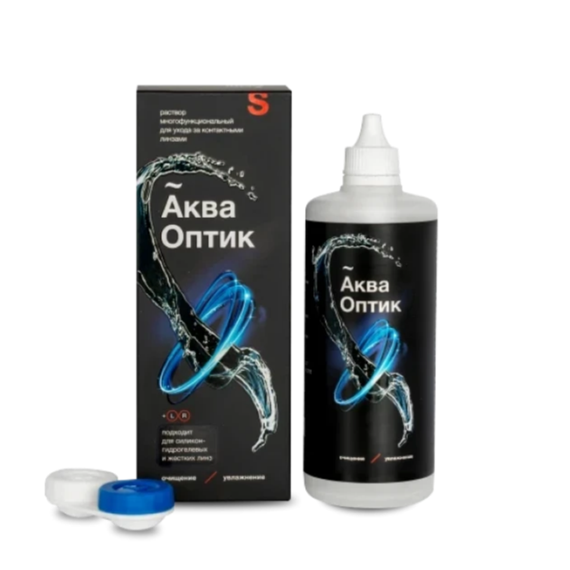 Раствор многофункциональный для ухода за контактными линзами АкваОптик (далее - раствор) представляет собой прозрачный или слегка опалесцирующий бесцветный раствор.