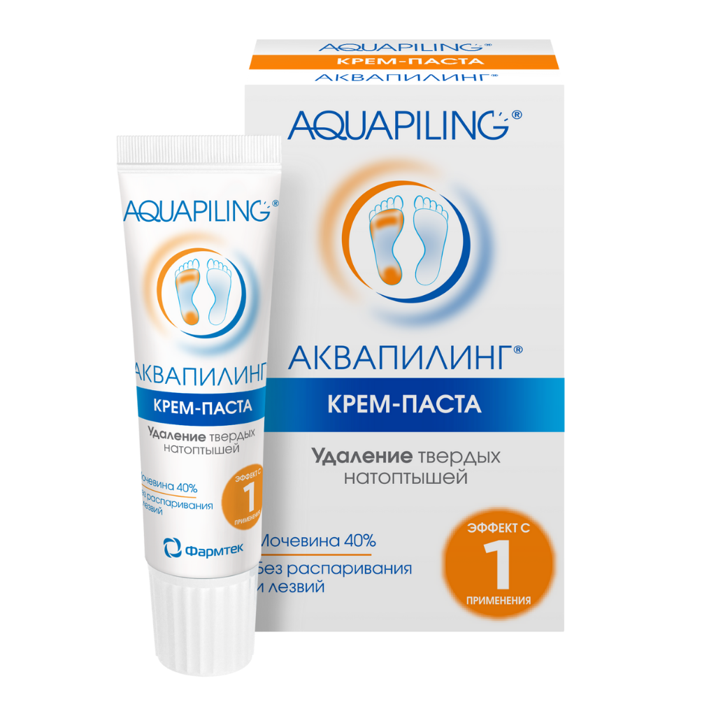 Крем-паста для устранения натоптышей серии АКВАПИЛИНГ® (AQUAPILING®) специально разработана для устранения плотных участков твердой ороговевшей кожи, возникающих при ношении тесной обуви, при длительной ходьбе, работе «на ногах», при деформации стопы или при состояниях, сопровождающихся избыточным ороговением.