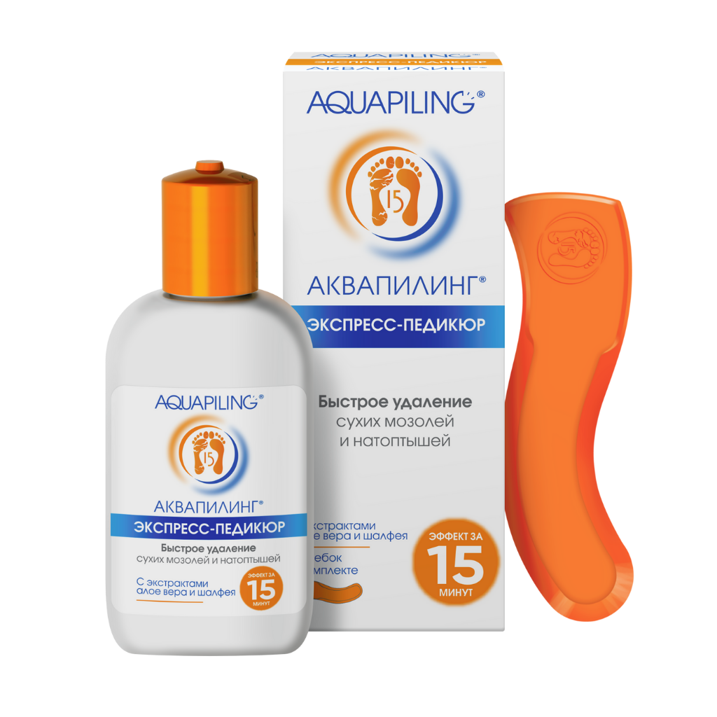 АКВАПИЛИНГ® экспресс-педикюр – это простой и доступный способ отшелушивания огрубевшей кожи на стопах за 15 минут. Воздействует только на ороговевшие клетки кожи. Дает эффект профессионального педикюра в домашних условиях. Подходит для ухода за кутикулой.