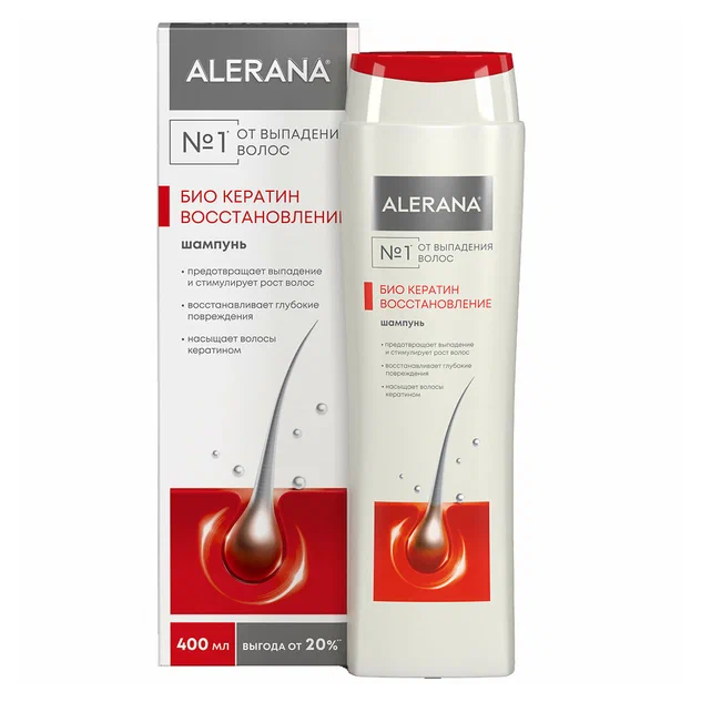 Инновационный продукт серии ALERANA для восполнения недостатка кератина и устранения глубоких повреждений ослабленных, склонных к выпадению волос.