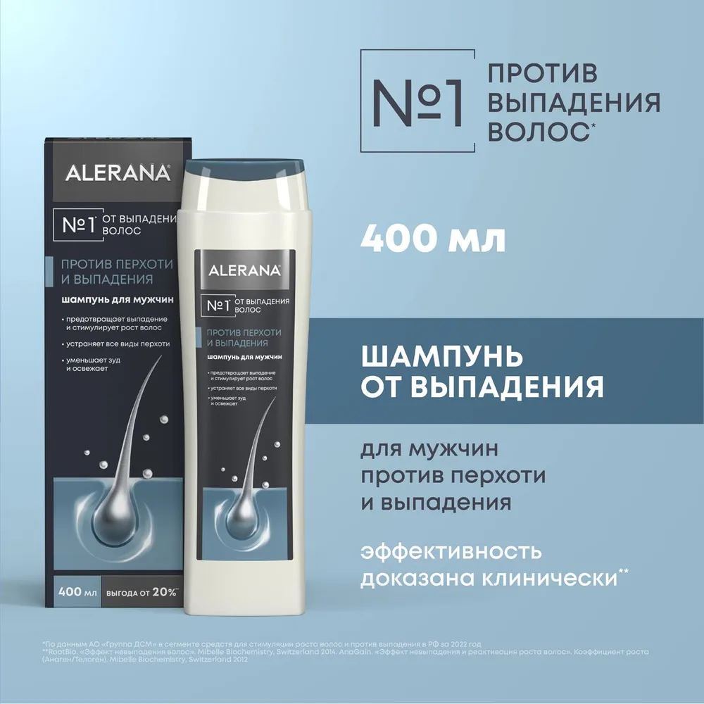 Алерана шампунь для мужчин 2в1 против перхоти и выпадения 400мл