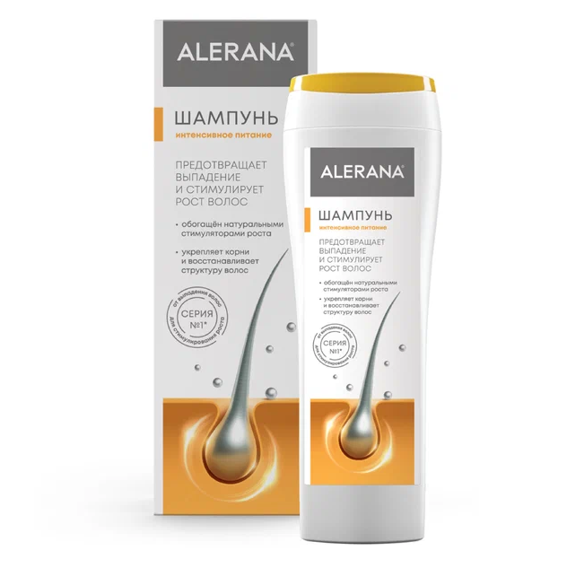 Шампунь ALERANA интенсивное питание обеспечивает интенсивное питание тонких, ослабленных, склонных к выпадению волос.