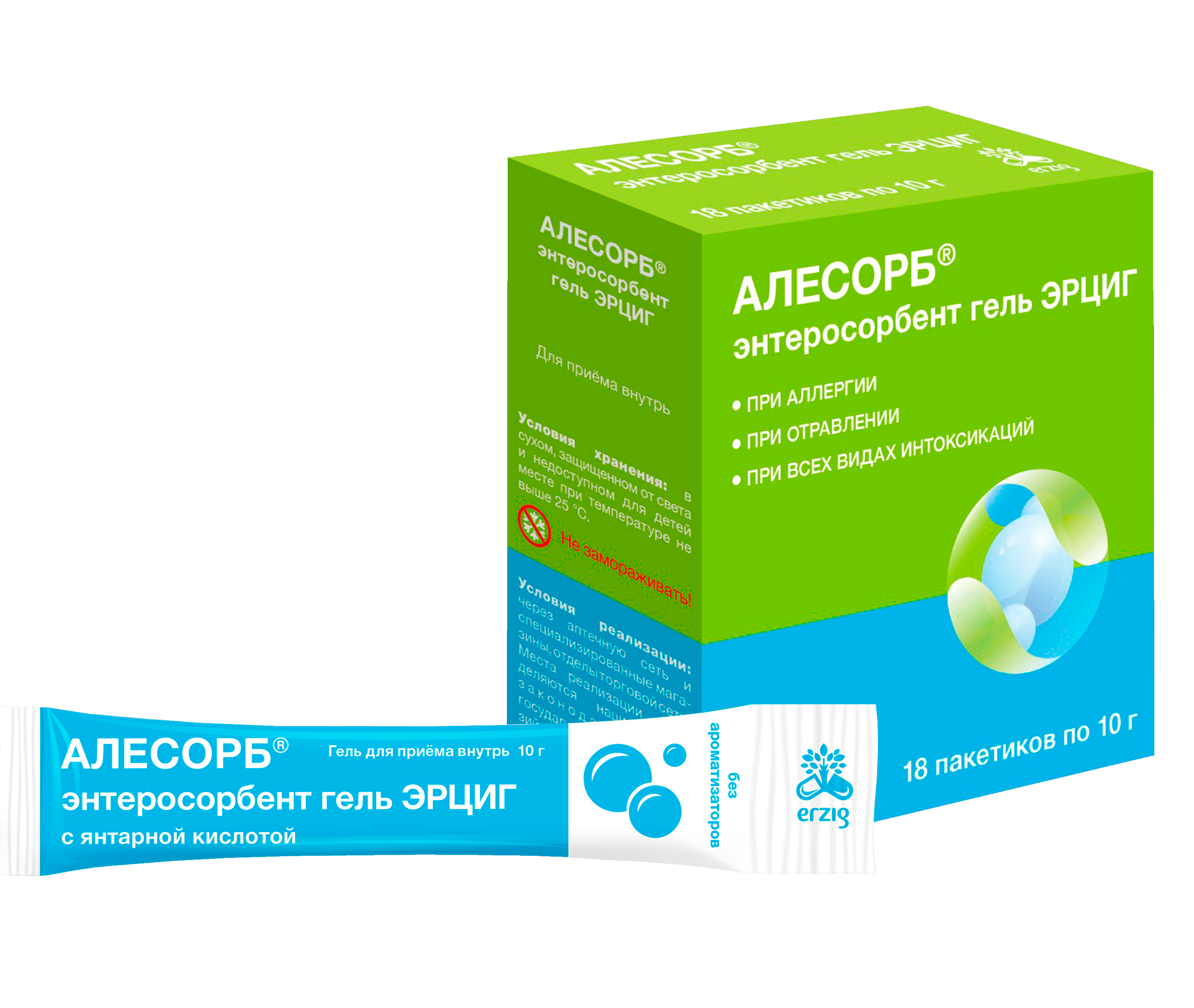 Алесорб энтеросорбент гель Эрциг гель для приема внутрь пакетики 10г №18