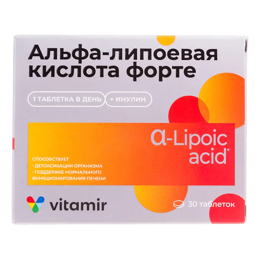 Альфа-липоевая кислота форте 100мг Витамир таблетки массой 618мг №30