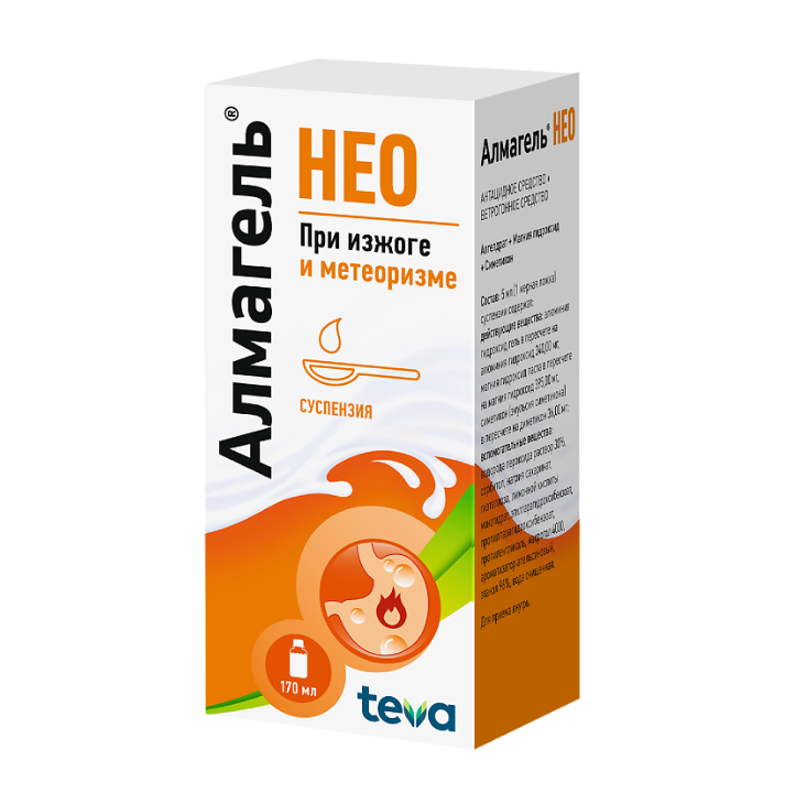 Интервал между приёмом Алмагеля® Нео и других лекарственных средств должен составлять 1–2 часа.