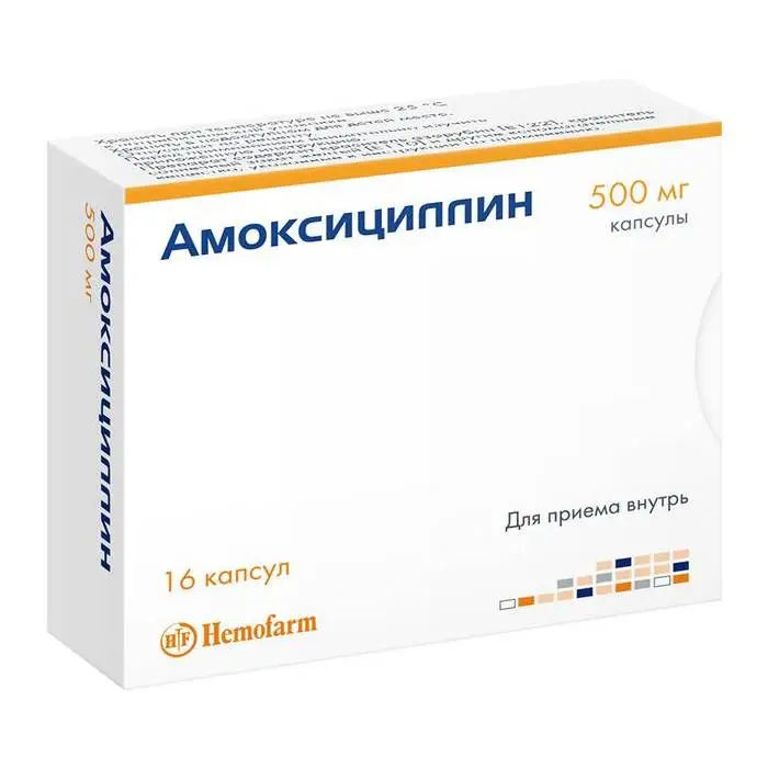 Абсорбция быстрая, высокая, (около 93 ;%), приём пищи не оказывает влияния на абсорбцию; амоксициллин не разрушается в кислой среде желудка. При приёме внутрь в дозе 250 ;мг максимальная концентрация в плазме крови (Сmax) достигается через 1–2 ;ч (TCmax) и составляет 3,5-5 ;мкг/мл. Период полувыведения (T½) -1-1,5 ;ч.