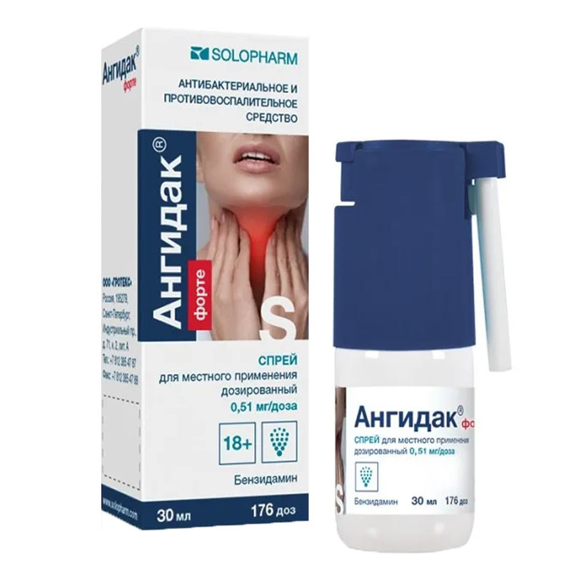 Ангидак форте спрей для местного применения дозированный 0,51мг/доза флакон 176доз 30мл