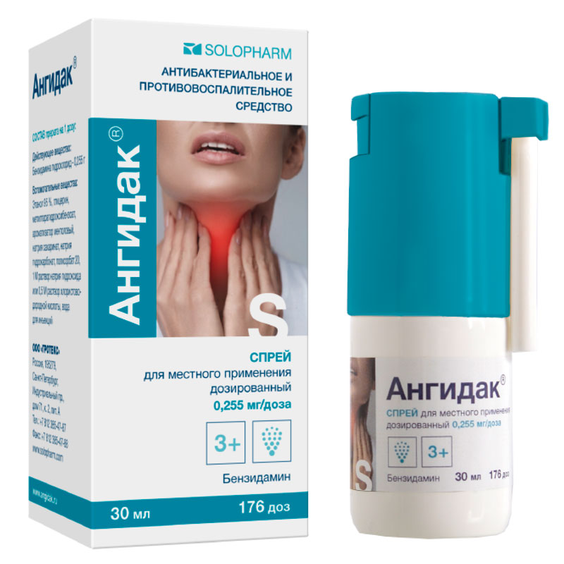 Ангидак спрей для местного применения дозированный 0,255мг/доза флакон с помпой 30мл 176доз