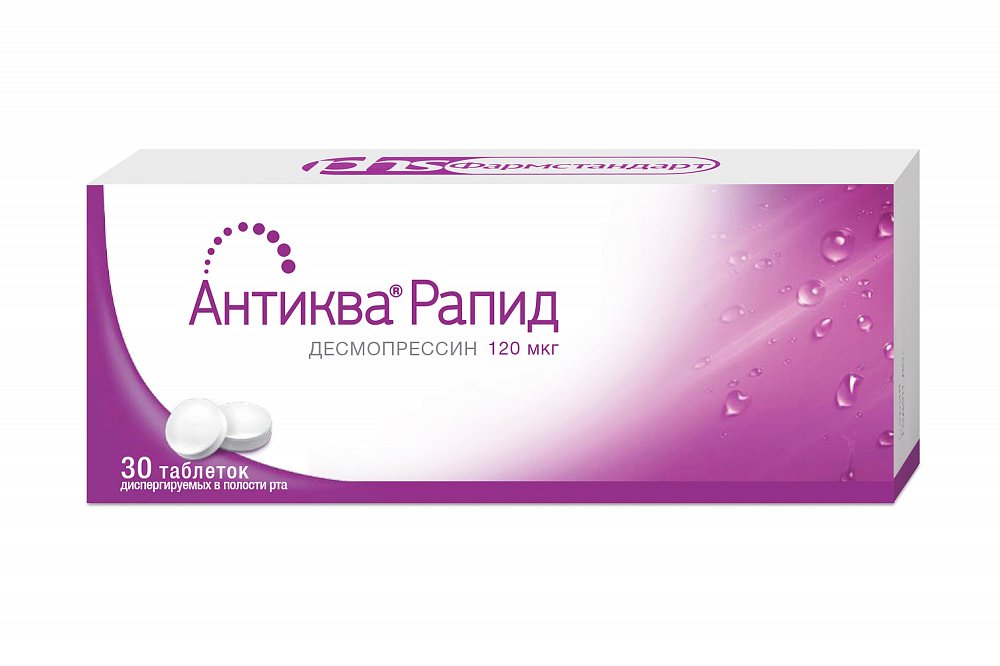Десмопрессин может оказывать антидиуретическое действие. Прием препа-рата Антиква Рапид, таблетки, диспергируемые в полости рта, без одновременного огра-ничения приема жидкости может приводить к задержке жидкости в организме, сопро-вождающейся гипонатриемией, проявляющейся головной болью, болью в животе, тошно-той, рвотой, повышением массы тела, головокружением, спутанностью сознания, недо-моганием и, в тяжелых случаях, может привести к судорогам, отеку мозга и коме. В част-ности, наиболее высок риск развития вышеперечисленных осложнений у детей в возрасте до 1 года или у пожилых пациентов (старше 65 лет), в зависимости от общего состояния здоровья.