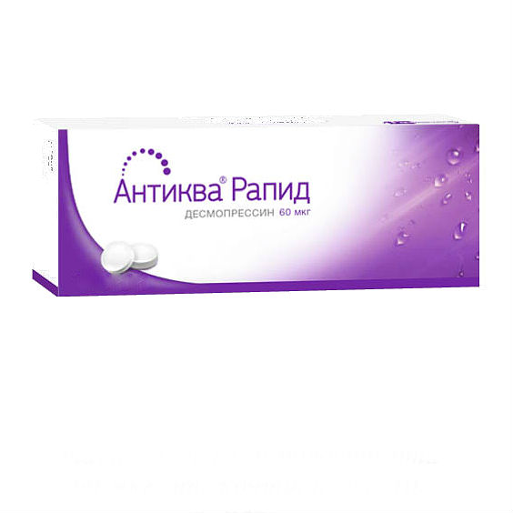 Препарат Антиква Рапид содержит десмопрессин - структурный аналог естественного гормона аргинин-вазопрессина, полученный в результате изменений в строении молекулы вазопрессина. Эти структурные изменения приводят, в сочетании со значительно усиленной антидиуретической способностью, к менее выраженному действию на гладкую мускулатуру сосудов и внутренних органов по сравнению с вазопрессином, что обусловливает отсутствие нежелательных спастических побочных эффектов. В отличие от вазопрессина действует более длительно и не вызывает повышения артериального давления (АД). Препарат увеличивает проницаемость эпителия дистальных извитых канальцев нефрона для воды и повышает ее реабсорбцию. Применение препарата Антиква Рапид при центральном несахарном диабете приводит к уменьшению объема выделяемой мочи и одновременному повышению осмолярности мочи и снижению осмолярности плазмы крови. Это приводит к снижению частоты мочеиспускания и уменьшению ночной полиурии.