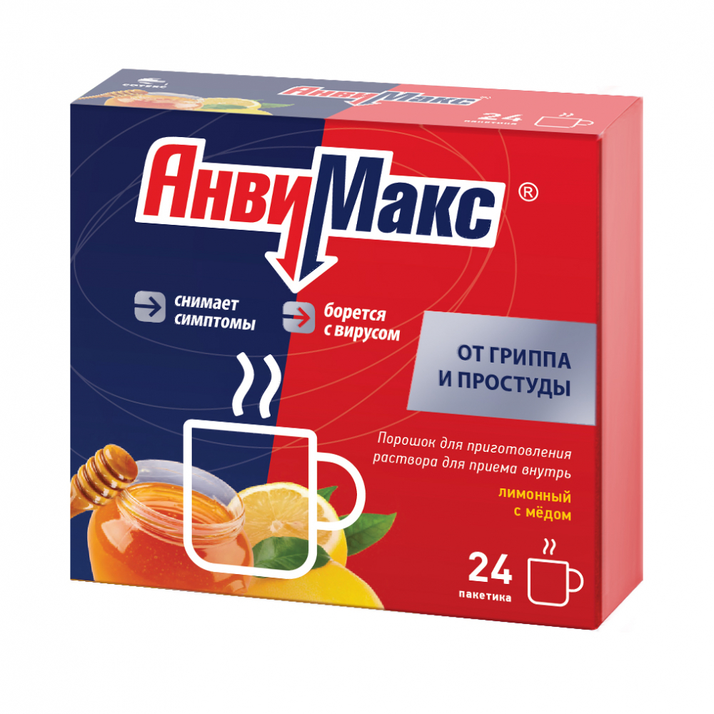 АнвиМакс порошок для приготовления раствора для приёма внутрь лимонный с мёдом пакетики 5г №24