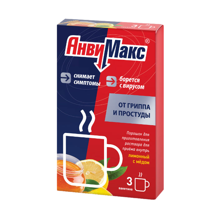 АнвиМакс порошок для приготовления раствора для приёма внутрь лимонный с мёдом пакетики 5г №3