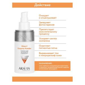 Бренд ARAVIA - российская профессиональная косметика для лица, для шугаринга, для депиляции и парафинотерапии, коррекции фигуры, SPA-ухода за руками и ногами. ARAVIA PROFESSIONAL ПУДРА ЭНЗИМНАЯ ДЛЯ УМЫВАНИЯ С ВИТАМИНОМ С - для всех типов кожи.