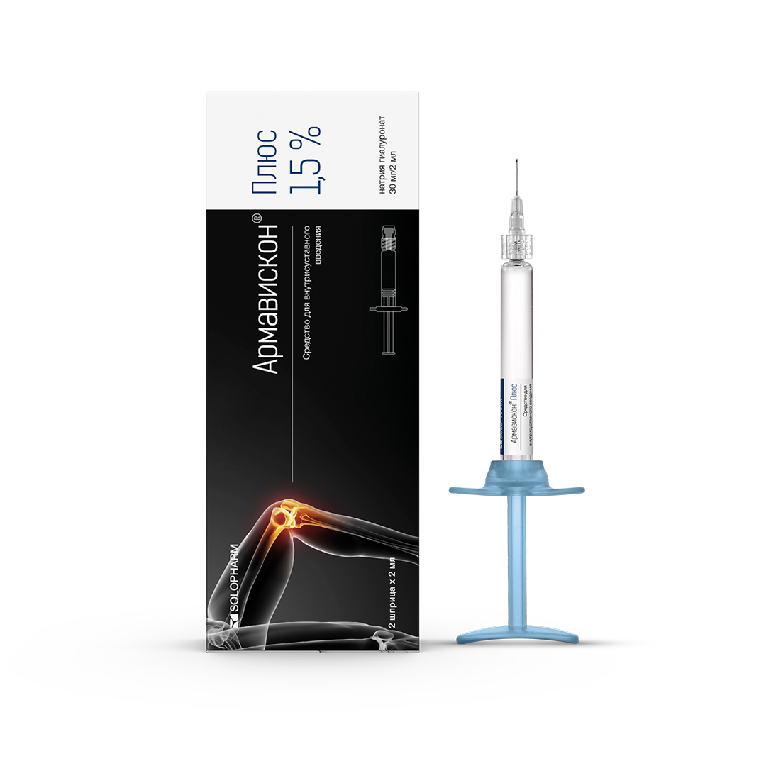 Средство Армавискон® Плюс является протезом синовиальной жидкости сустава в преднаполненных шприцах. Применяется на фоне дегенеративных изменений поверхности синовиального хряща для улучшения подвижности суставов, уменьшения болевого синдрома, снижения воспалительных реакций и восстановления гомеостаза в хряще.