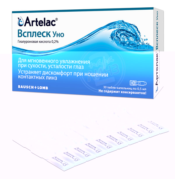 Артелак Всплеск Уно раствор увлажняющий офтальмологический 0,24% тюбик-капельницы 0,5мл №30
