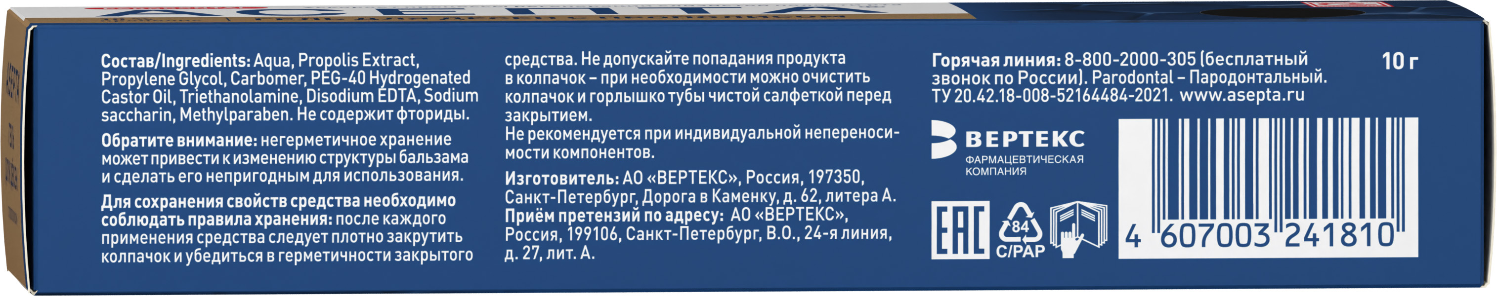 Гель для десен с прополисом «Асепта» изготовлен на основе продукта жизнедеятельности пчел.
