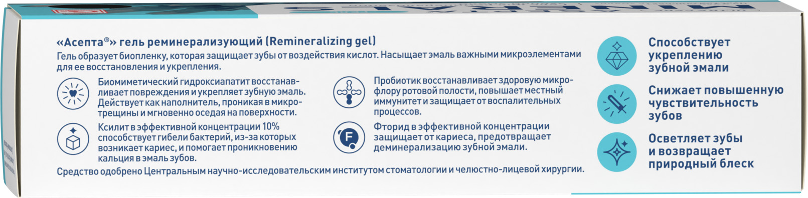 Состав разработан с учетом особенностей строения эмали зубов и позволяет эффективно справляться с комплексом проблем пародонта. Также Гель для реминерализации поможет улучшить внешний вид зубов, осветлить их и снизить частоту проведения процедуры отбеливания.