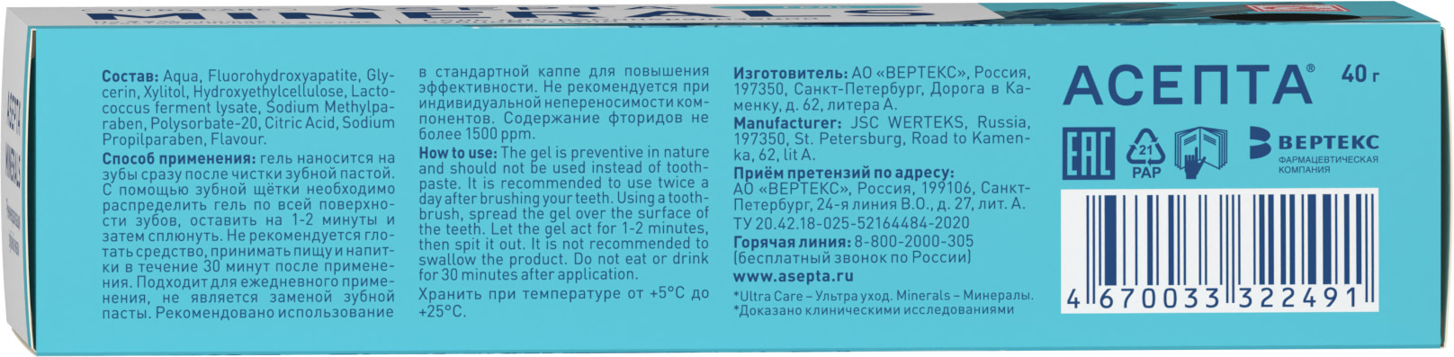 Гель содержит высокую концентрацию биомиметического гидроксиапатита, поможет снизить дискомфорт и сделать эмаль более устойчивой к внешним раздражителям.