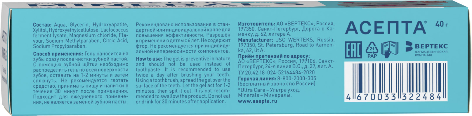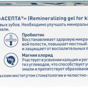 Детский гель реминерализующий создан для формирования и укрепления зубной эмали у детей с 6 лет. Минерализация, или «созревание» эмали у детей при смене молочных зубов на коренные является основой здоровых зубов во взрослом возрасте. После активной фазы минерализации насыщение эмали микроэлементами и минералами замедляется. Реминерализующий гель АСЕПТА для детей создает необходимые условия для формирования крепкой зубной эмали за счет улучшения минерального состава микрофлоры полости рта. Вкус "клубника-йогурт.