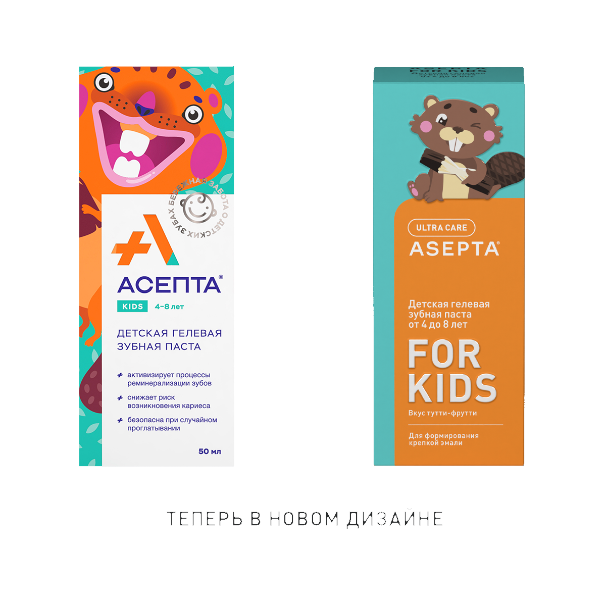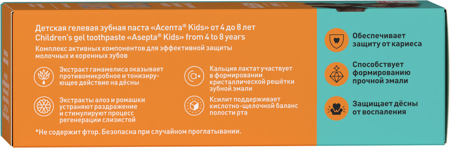 Асепта Kids Вкус Тутти-фрутти детская гелевая зубная паста от 4 до 8 лет туба 50мл