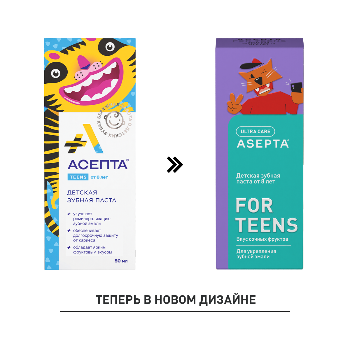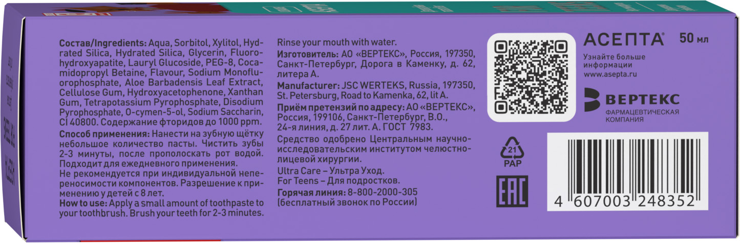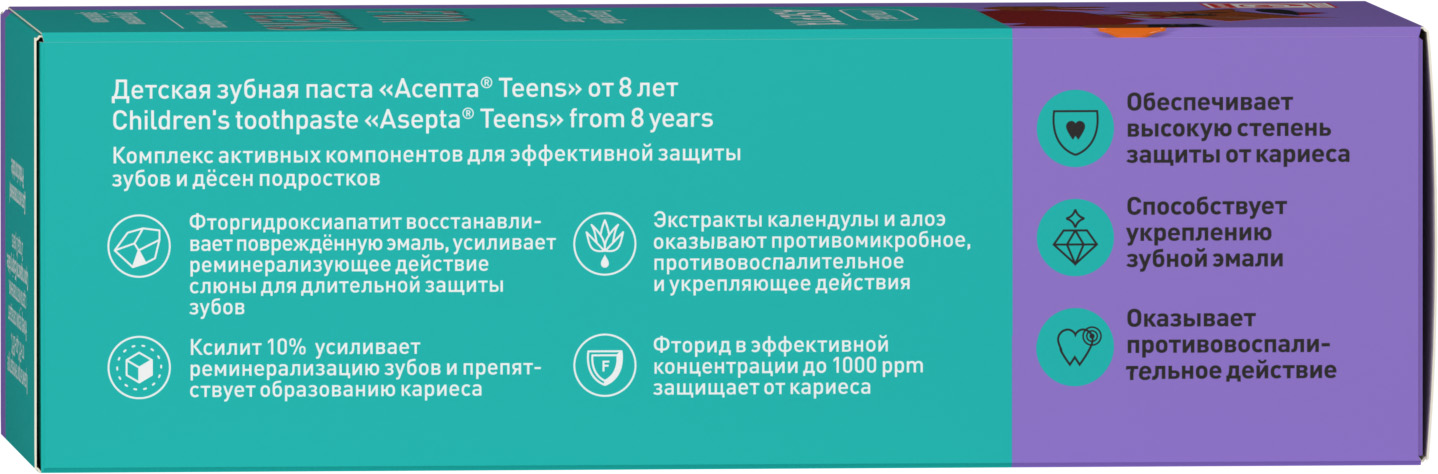 Асепта Teens Вкус сочных фруктов детская зубная паста от 8 лет туба 50мл