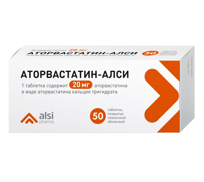 Аторвастатин-Алси таблетки покрытые плёночной оболочкой 20мг №50