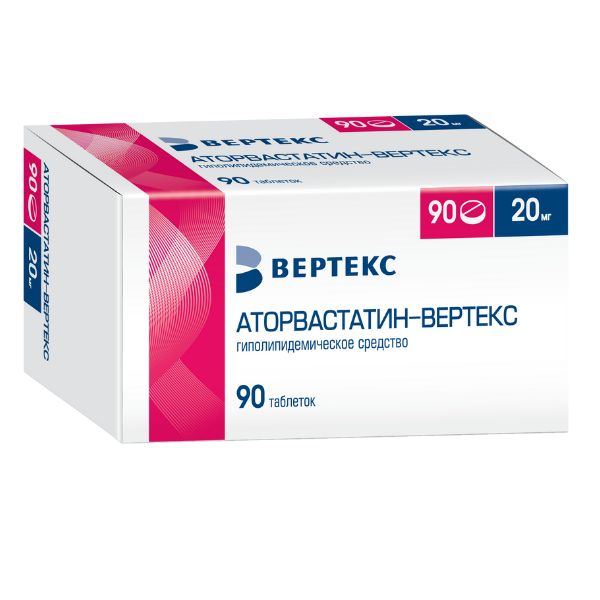 Аторвастатин-Вертекс таблетки покрытые плёночной оболочкой 20мг №90