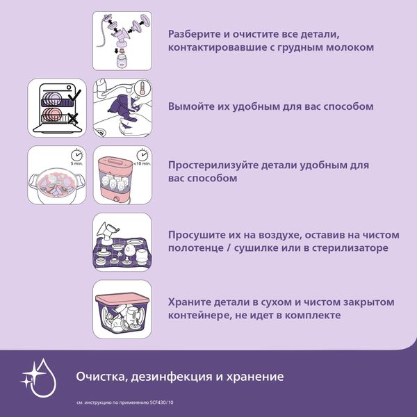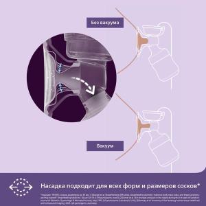 - Для сцеживания и кормления малыша - Для кормления малыша сцеженным молоком просто прикрепите соску к бутылочке, которые входят в комплект молокоотсоса. Для хранения молока перед последующим кормлением закройте бутылочку с помощью уплотнительного диска, входящего в набор молокоотсоса.