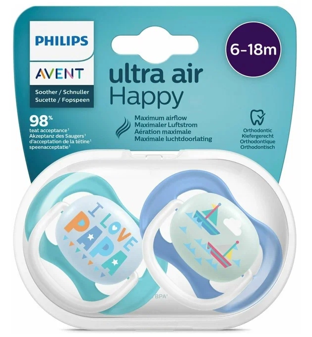 Авент ultra air пустышка силиконовая для мальчиков 6-18месяцев SCF080/15 с футляром №2