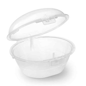 Положите в футляр хорошо промытые пустышки, добавьте 25 мл воды и поставьте его в микроволновую печь на 3 минуты при мощности 750-1000 Вт. Охладите в течение 5 минут, вылейте из футляра воду - и процесс завершен!