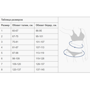 - Широкая полоса крепления застежки велкро позволяет регулировать бандаж в пределах двух размеров, надежно фиксировать и моделировать бандаж по фигуре.