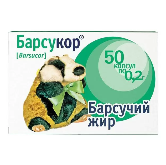 БАРСУЧИЙ ЖИР - топленный барсучий жир в капсулированном виде. Мягкие круглые желатиновые капсулы, мутные или полупрозрачные, диаметром 6 мм. Имеют выраженный желтоватый оттенок. Капсулированная форма Барсукор не имеет запаха и вкуса, что упрощает пероральный прием барсучьего жира.