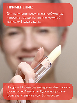 Для 1 курса достаточно 1 помады. Курсы могут быть более длительные – до 3-х месяцев. Повторяйте 2-4 раза в год или по мере необходимости.