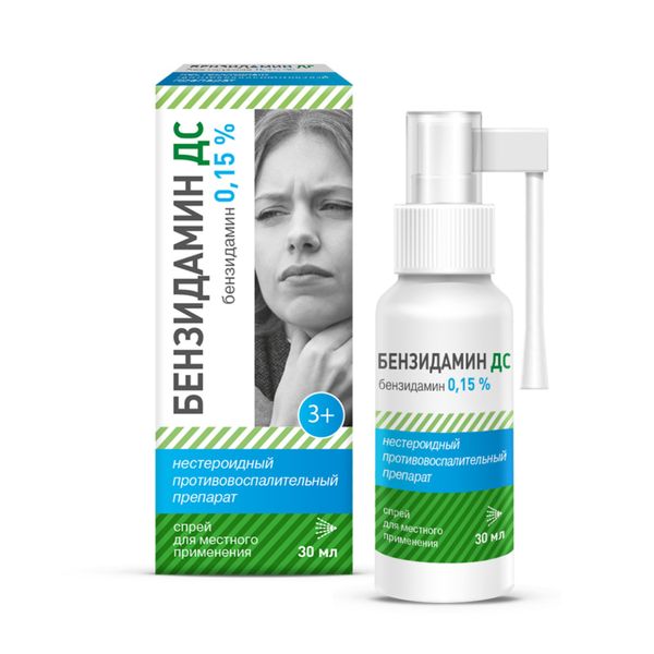 Препарат Бензидамин ДС содержит этанола (96 %). Содержащие этанола в разовой дозе: 4–8 впрыскиваний составляет около 115–230 мг