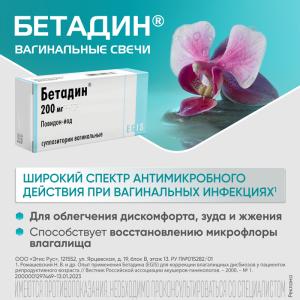 Бетадин суппозитории вагинальные 200мг №14