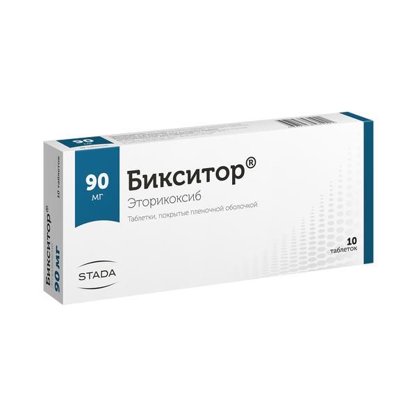 Ацетилсалициловая кислота. В исследовании с участием здоровых добровольцев эторикоксиб в дозе 120 мг в день в равновесном состоянии не влиял на антитромбоцитарную активность ацетилсалициловой кислоты (81 мг 1 раз в день). Препарат Бикситор® можно применять одновременно с ацетилсалициловой кислотой в низких дозах, предназначенных для профилактики СС заболеваний. Однако одновременное назначение низких доз ацетилсалициловой кислоты и эторикоксиба может привести к увеличению частоты язвенного поражения ЖКТ и других осложнений по сравнению с приёмом одного эторикоксиба. Одновременное применение эторикоксиба с ацетилсалициловой кислотой в дозах, превышающих рекомендованные для профилактики СС осложнений, а также с другими НПВП не рекомендуется.