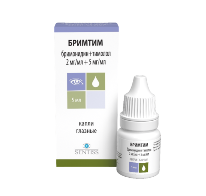 Препарат Бримтим содержит действующие вещества бримонидин (агонист альфа- адренорецепторов) и тимолол (блокатор бета-адренорецепторов), которые применяются для лечения глаукомы — заболевания, сопровождающегося повышением внутриглазного давления (офтальмогипертензия).