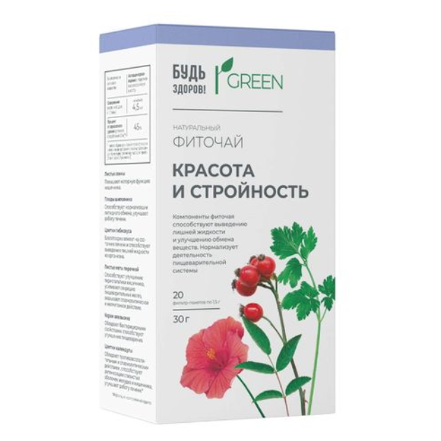 Будь Здоров! Грин Фиточай Красота и стройность фильтр-пакеты 1,5г №20