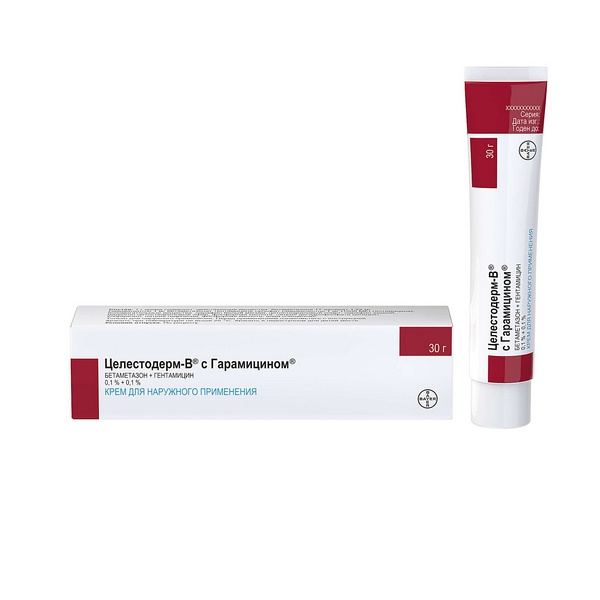 Крем Целестодерм® — В с Гарамицином® содержит глюкокортикостероид (ГКС) бетаметазона валерат, оказывающий противовоспалительное, противозудное и сосудосуживающее действие, и антибиотик гентамицин, обладающий антибактериальной активностью широкого спектра действия. В число восприимчивых к гентамицину бактерий входят чувствительные штаммы Staphylococcus aureus (коагулазо-позитивный, коагулазо-негативный и некоторые пенициллиназо-продуцирующие штаммы), а также грамотрицательные бактерии Pseudomonas aeruginosa, Aerobacter aerogenes, Escherichia coli, Proteus vulgaris и Klebsiella pneumoniae.