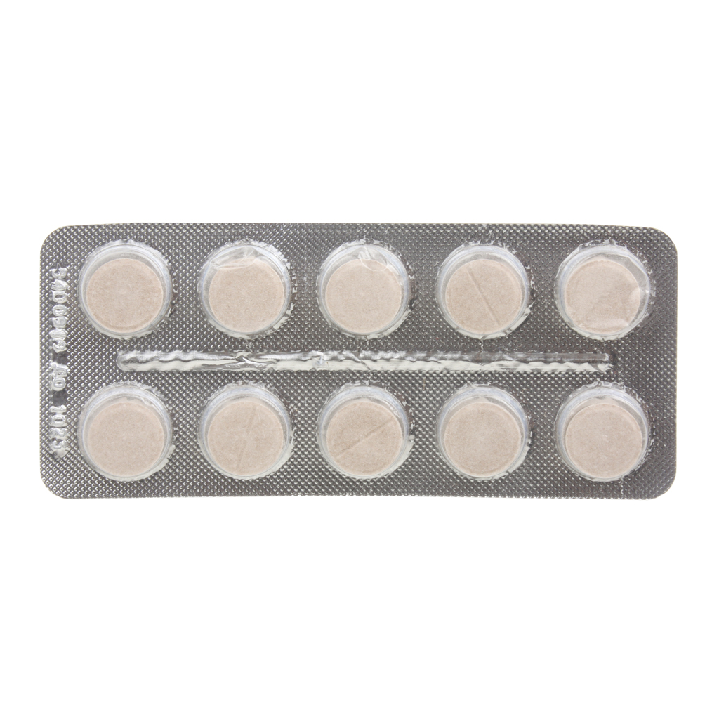 Таблетки светло-коричневого цвета с вкраплениями, плоскоцилиндрические с фаской и риской, с запахом какао.