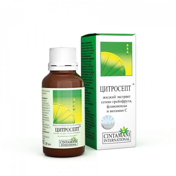 Цитросепт - биологически активная добавка (БАД) к пище, содержит натуральный экстракт семян грейпфрута (биофлавоноиды и витамин С). Обладает антиоксидантным, детоксицирующим, гиполипидемическим, противовоспалительным, гепатопротективным, а также антибактериальным, противогрибковым и противовирусным действием.