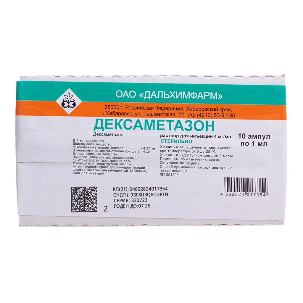 Дексаметазон раствор для инъекций 4мг/мл ампулы 1мл №10