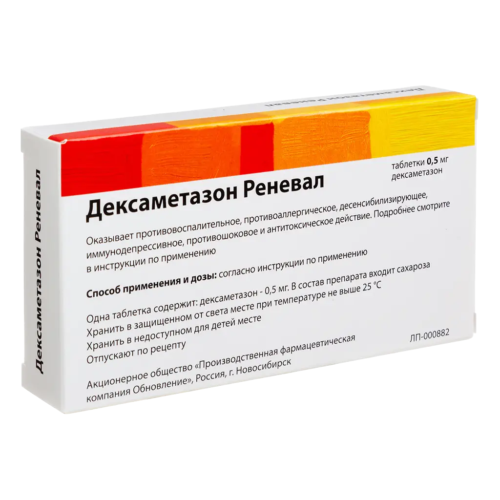 По силе глюкокортикоидной активности 0,5 мг дексаметазона соответствуют примерно 3,5 мг преднизолона, 15 мг гидрокортизона или 17,5 мг кортизона для лекарственных форм для перорального применения.